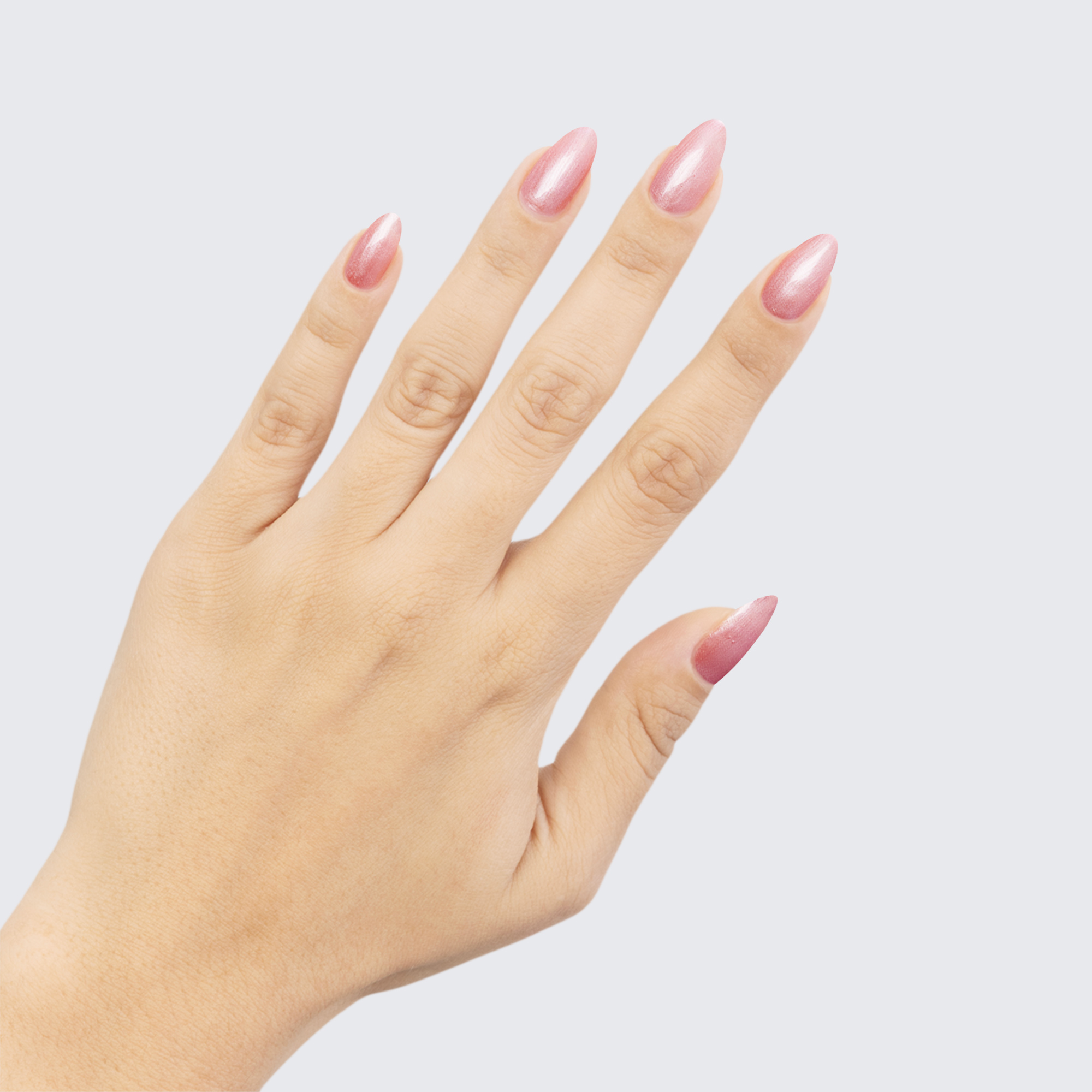 Rose gold. Pastel. Pearl finish. Opaque. Neutral undertone.