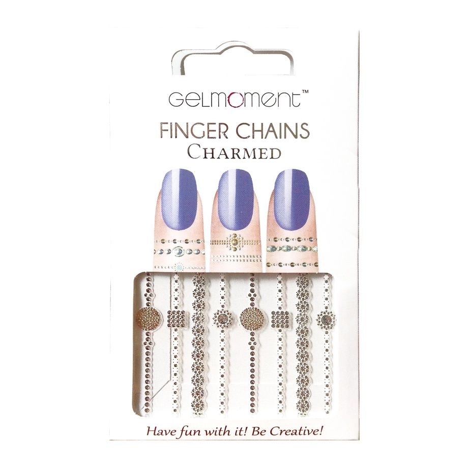 Why end the fun at your nails? Extend your creativity onto your fingers with the help of GelMoment Finger Chains. These self-adhesive "rings" draw the eye toward your beautiful GelMoment manicure. The cute stick-on finger decals can also be used to create a toe ring! Simply apply to the skin around your fingers or toes and enjoy! No glue required.