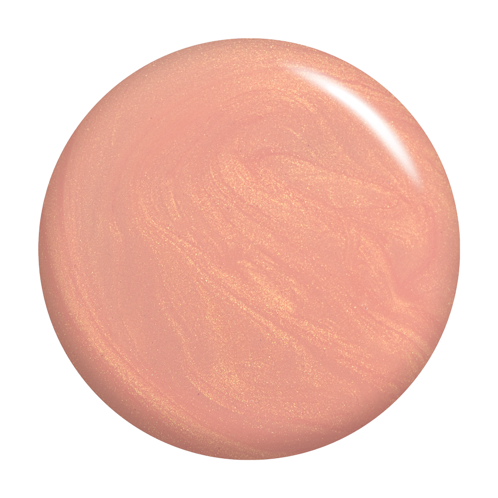 Pale muted peach. Pearl finish. Golden iridescence. Opaque. Warm undertone.