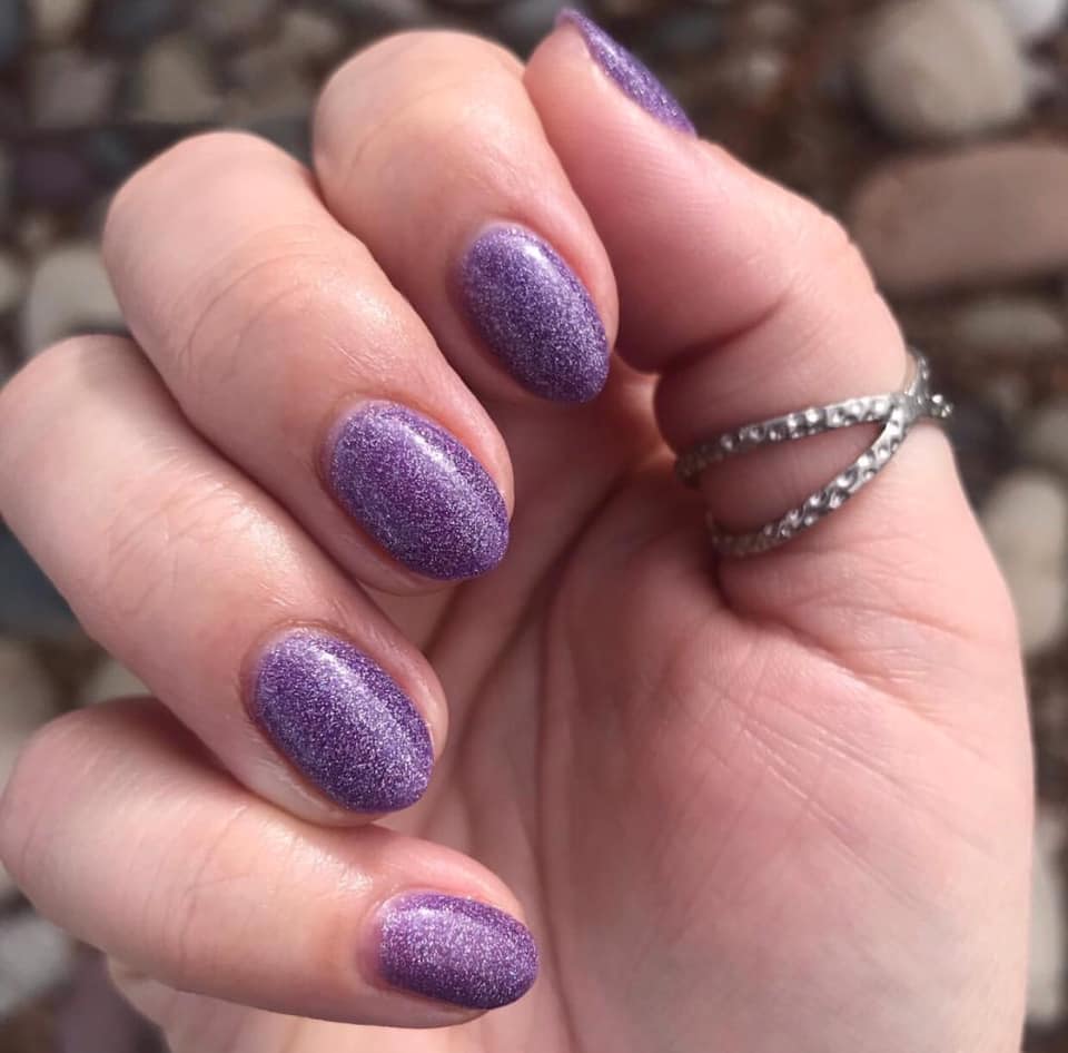 With such a breathtaking shimmer, this deep lavender polish is far from a wallflower.